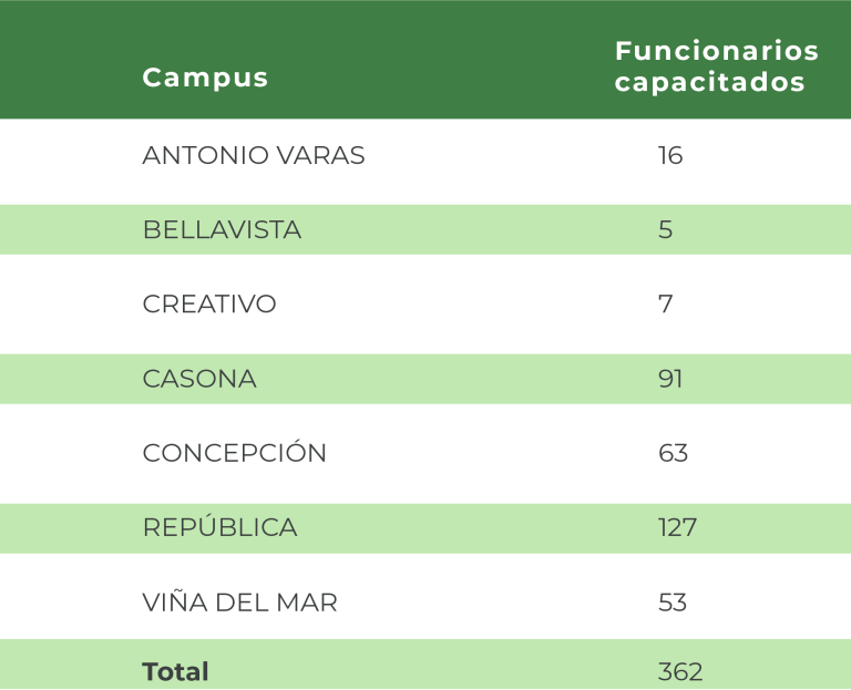 El módulo se integró en la segunda unidad del curso de Responsabilidad Social. La información entregada les permitirá convertirse en un agente de cambio pro-sostenibilidad y acción climática. Dicho módulo de sostenibilidad está compuesto por cuatro unidades en las que se abordan los siguientes temas: